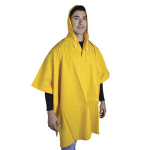 Impermeable capa manga DermaCare, fabricado en PVC y poliéster. Diseño de poncho amarillo con ventilación en axilas y espalda. Alta visibilidad y certificación europea. Medidas: 50×80 pulgadas.