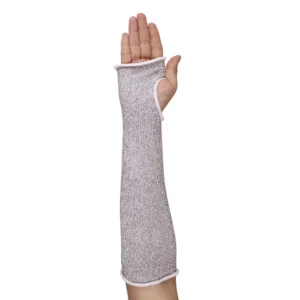 Manga Anticorte gris, elaborada en polietileno de alta densidad y fibra de vidrio, resistente al corte. Transpirable, lavable y resistente al calor. Nivel 5 de protección. Recomendada para trabajos de corte en industrias del vidrio, alimentaria y metalmecánica.
